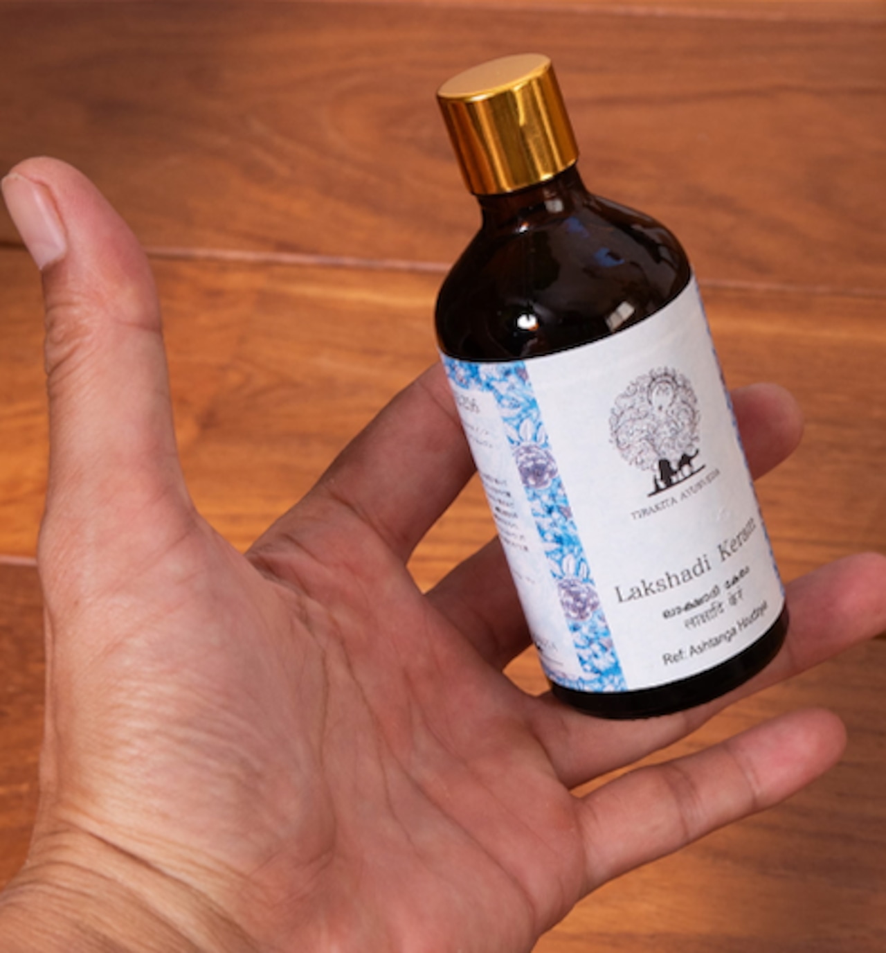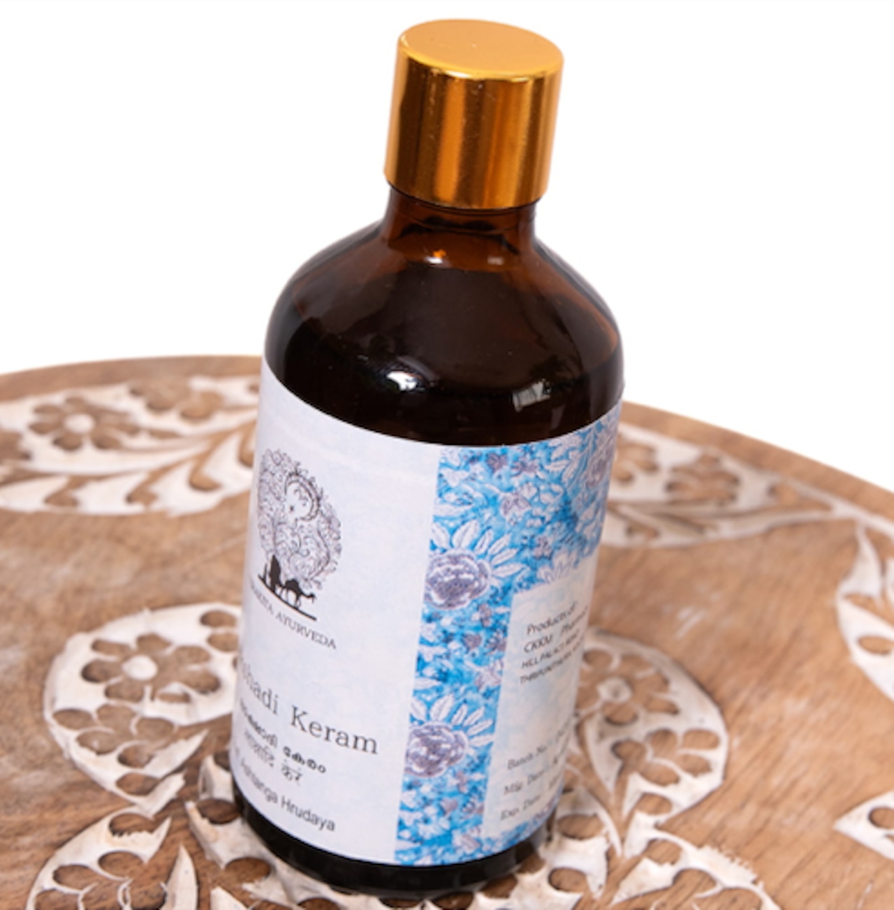 ラクシャディ ケラム(Lakshadi Keram)とは、ココナッツオイルを使ったアーユルヴェーダの古典的な調合で、柔らかい肌や、過敏な肌へのマッサージに向いています。