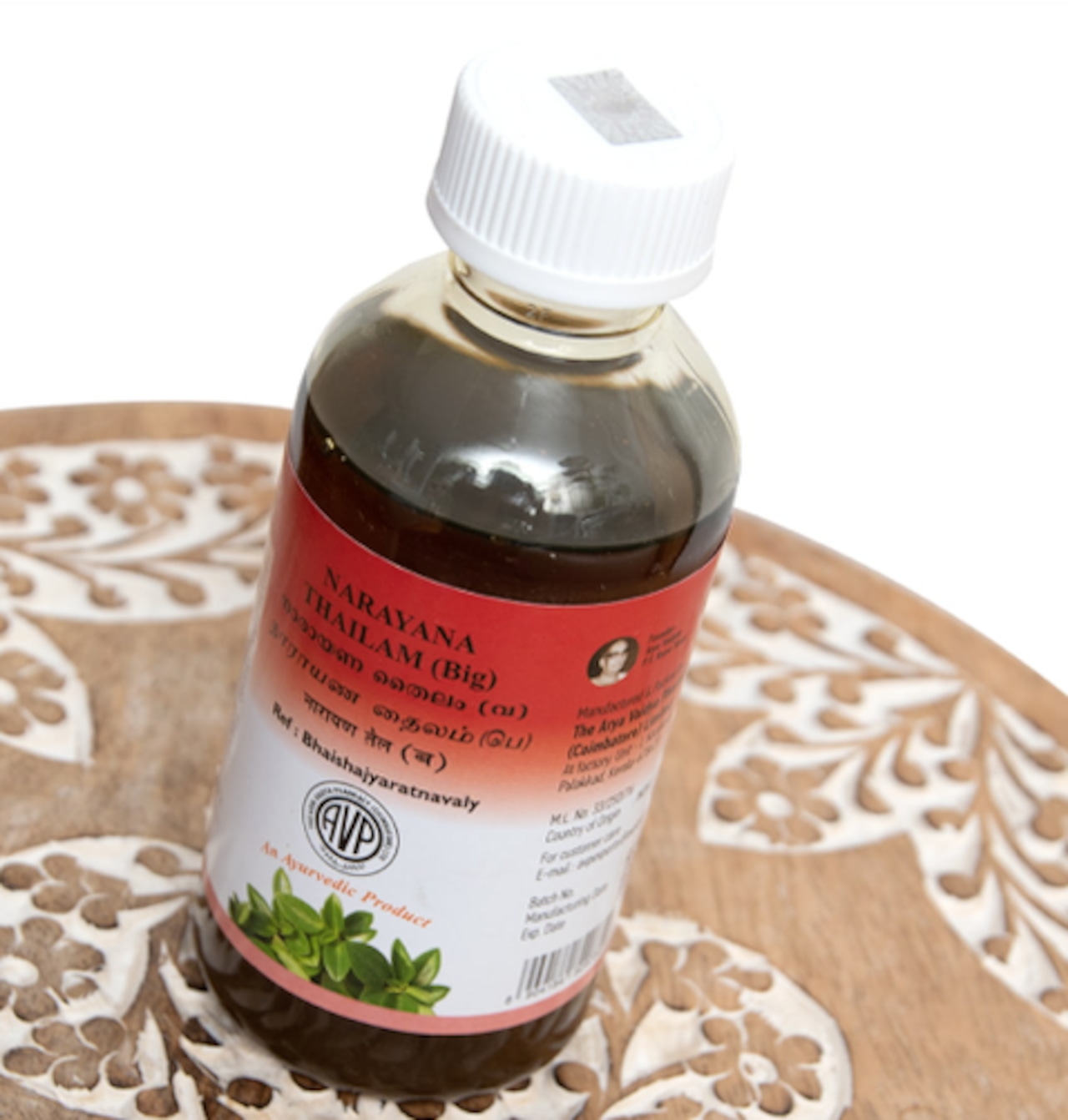 膝や肘、背中や腰にお使いいただけるナーラヤーナタイラムです。
