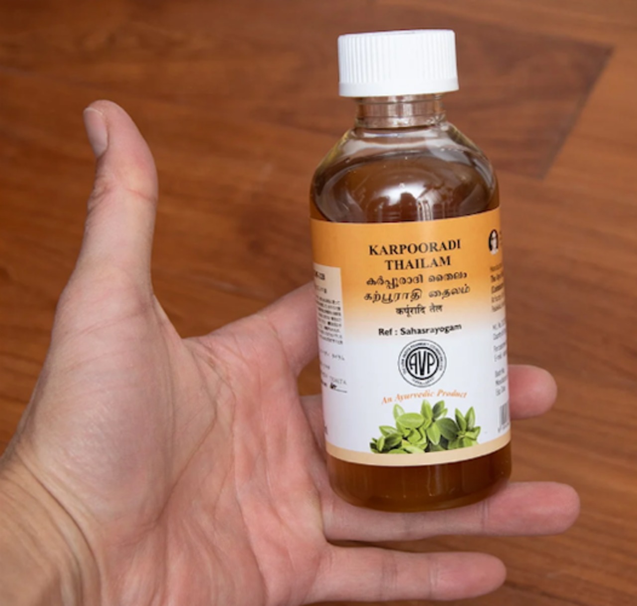 カルプーラディ タイラムは、アーユルヴェーダに伝わる伝統的な処方に基づき調合されたハーバルオイルです。
