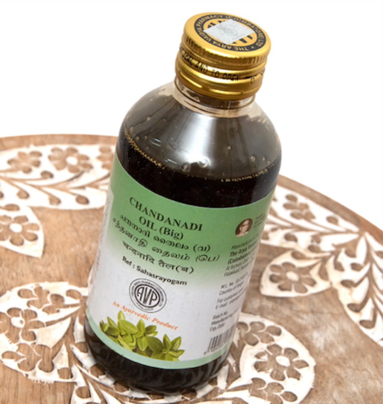 ボディオイルとして、また頭皮マッサージやフットケアなどにも AVP チャンダナディ タイラム[Chandanadi Thailam 200ml]