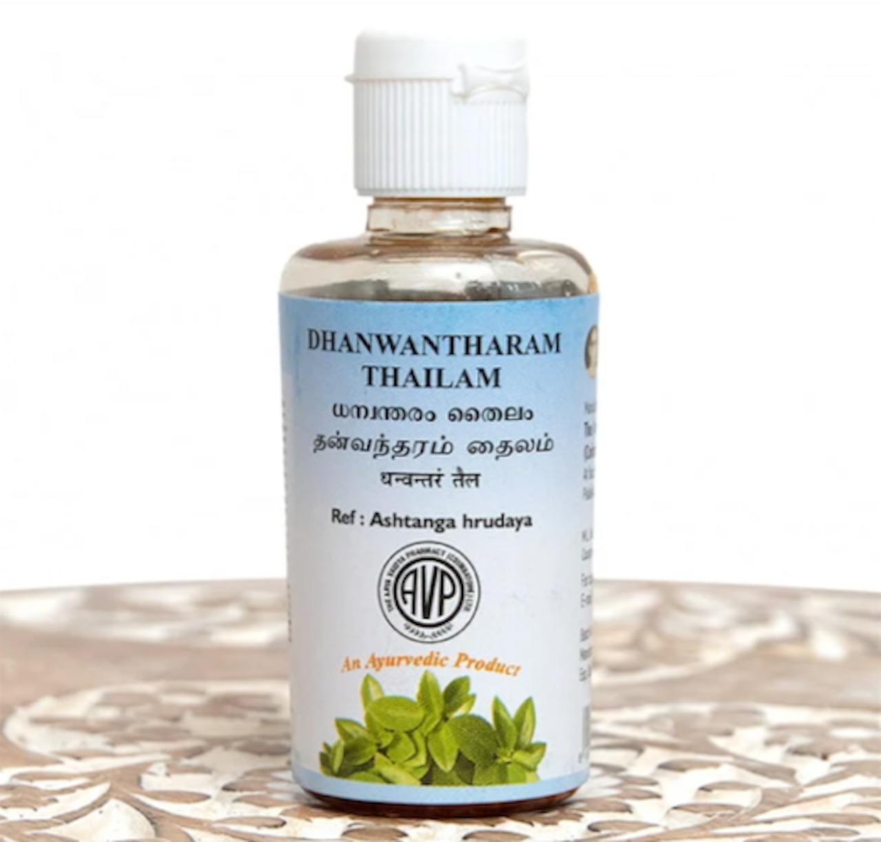 ダンワンタラムタイラム(DHANWANTHARAM THAILAM)は、ごま油に約28種類の植物のパワーを溶かし込んだアーユルヴェーダの古典的な調合で、オイルの王様として知られるボディマッサージオイルです。特に風のエネルギー(ヴァータ)向きのオイルです。